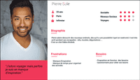 Pour notre projet, nous sommes concentrées sur Pierre, un trentenaire qui adore voyager à travers le monde dès qu'il a la possibilité. Cependant parfois il a besoin de quelques idées de destination et il n'a pas le temps de faire des recherches.