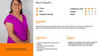 Voici Marie, une institutrice retraitée de 70 ans. Elle prend souvent des rendez-vous médicaux chez son généraliste et des spécialistes. Elle aimerait bien avoir tous les médecins regroupés dans un seul centre pour gagner du temps. La plus grande crainte de Marie reste les nouvelles technologies. Elle n'est pas à l'aise avec des ordinateurs et des téléphones mobiles. Nous avons choisi une deuxième persona pour ce projet, Gérard un cadre commercial de 50 ans qui est très occupé et a besoin d'une flexibilité dans la prise des rendez-vous. Contrairement à Marie, il est habitué aux nouvelles technologies.
